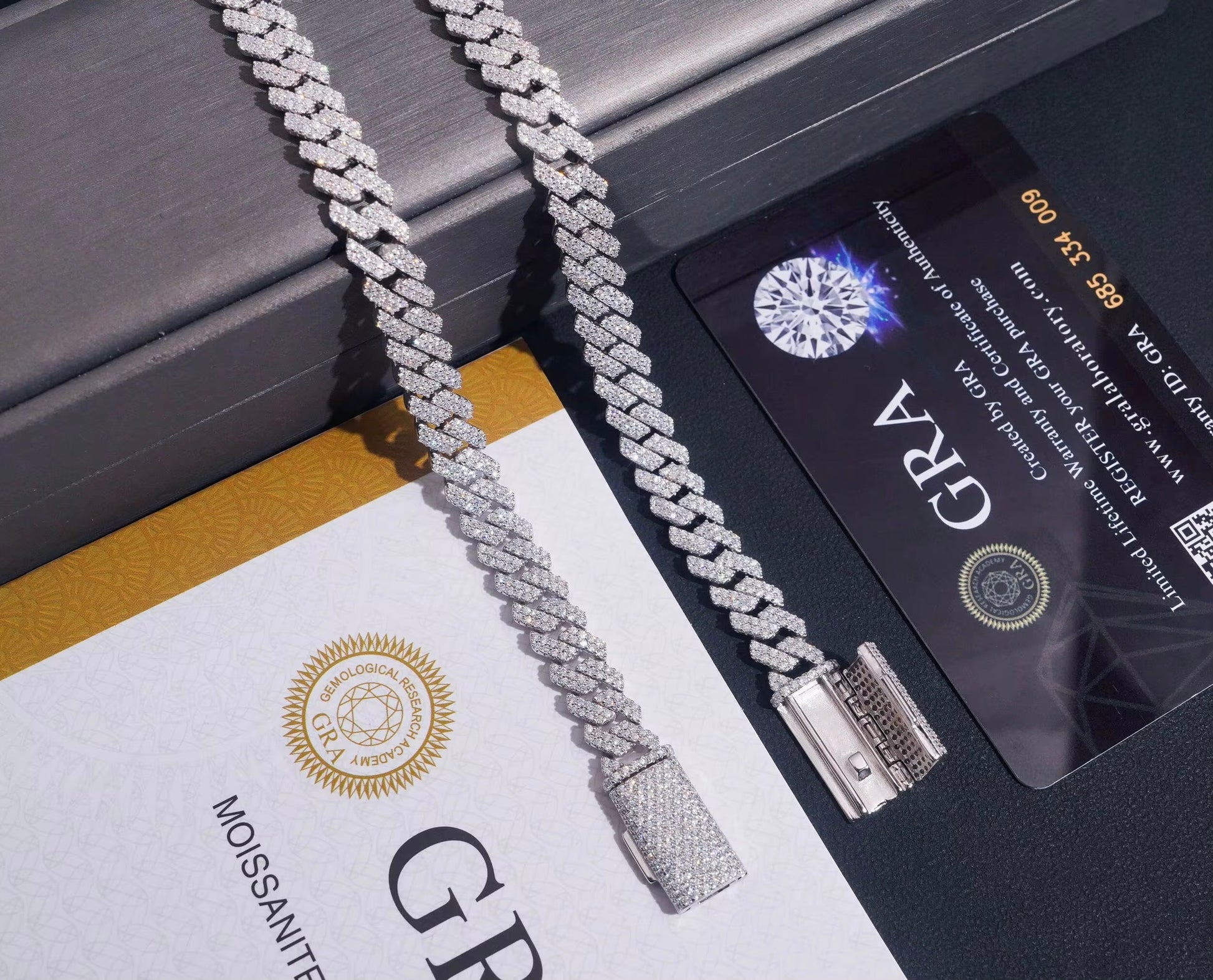 This 8MM VVS Moissanite Cuban Chain Is Crafted With Sterling silver And Carefully Placed VVS Moissanite Stones Garunteed To Pass A Heat Diamond Tester. With a length of 6.5 inches it showcases the pinnacle of modern fashion. Bold, classy, Real, and a dripp of flash. Have your Hustle be known and questioned by none.